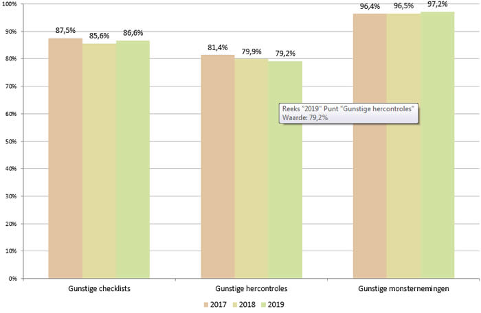 |  | 2018 | 2019 | 2019 vs. 2018 (%) | Conformiteit 2018 (%) | Conformiteit 2019 (%) |