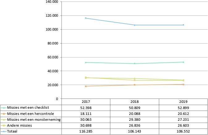 Tijdens een missie kunnen meerdere types controles  gerealiseerd worden: inspecties, monsternemingen en andere.