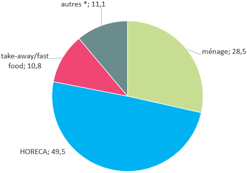 * Autres (5,7%), ambulant (1,8%), école/crèche (1,2%), cantine/restaurant d'entreprise (0,6%), kermesse/festival (0,6%), inconnu (0,6%), hôpital/établissement de soins médicaux (0,3%), camp/pic-nic (0,3%).